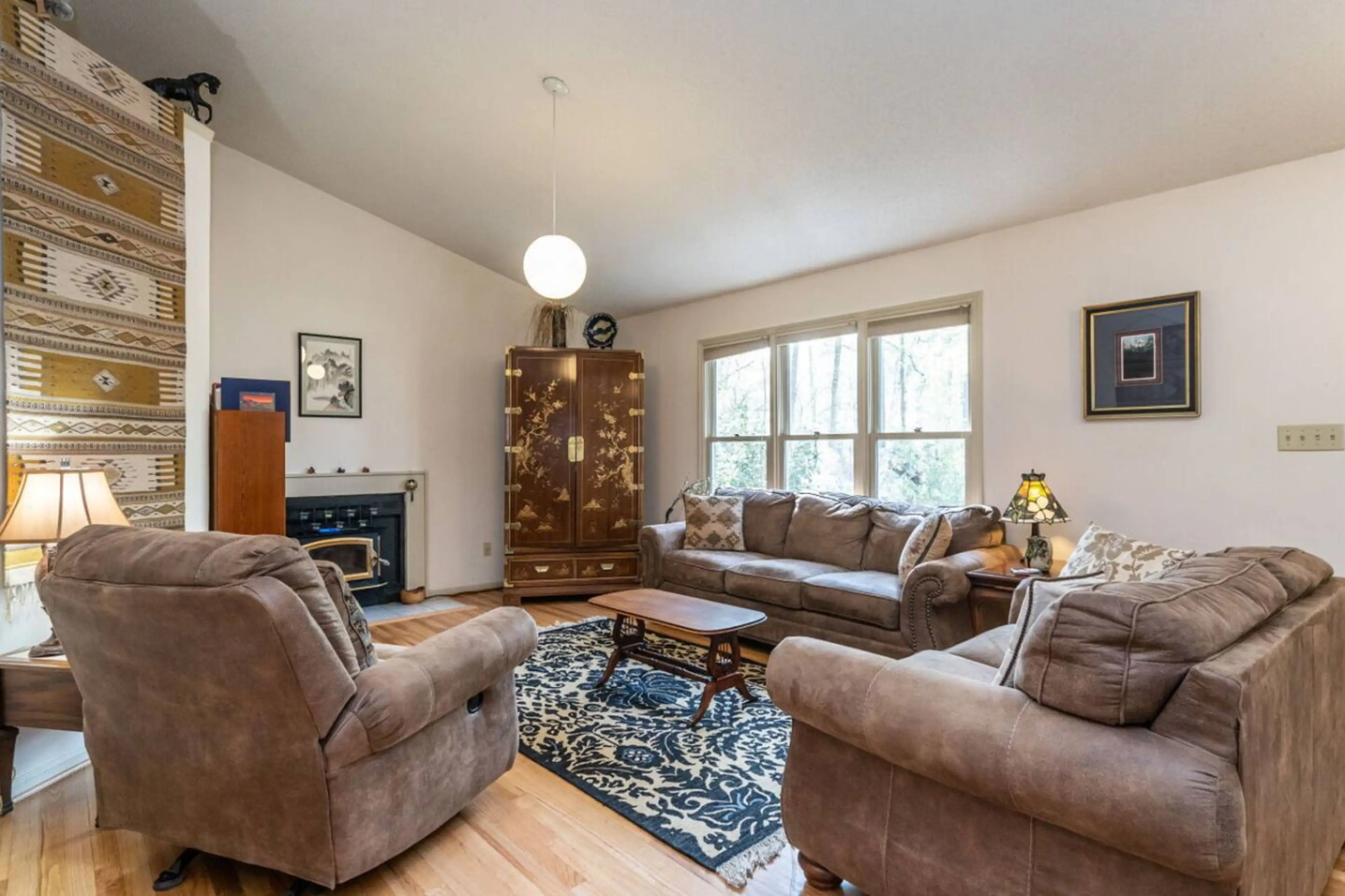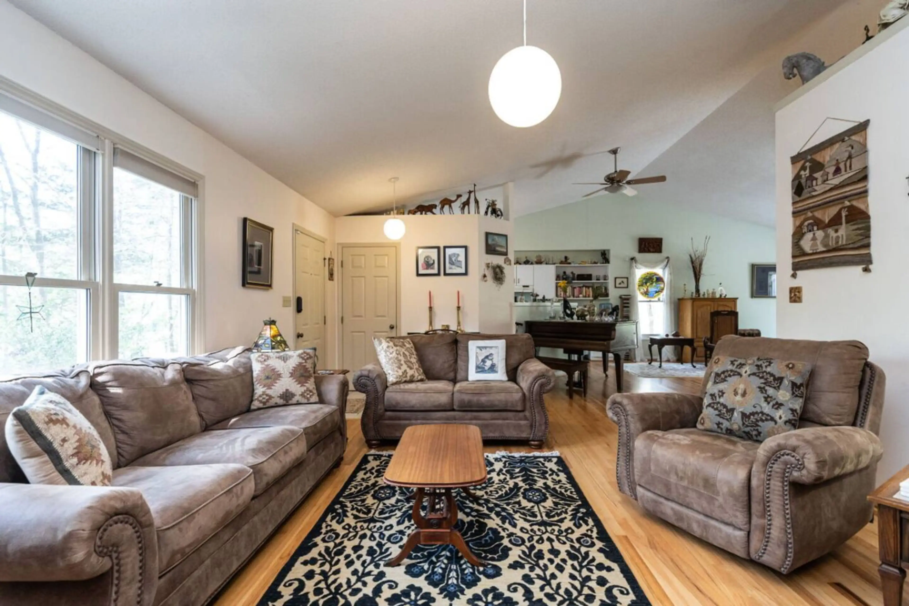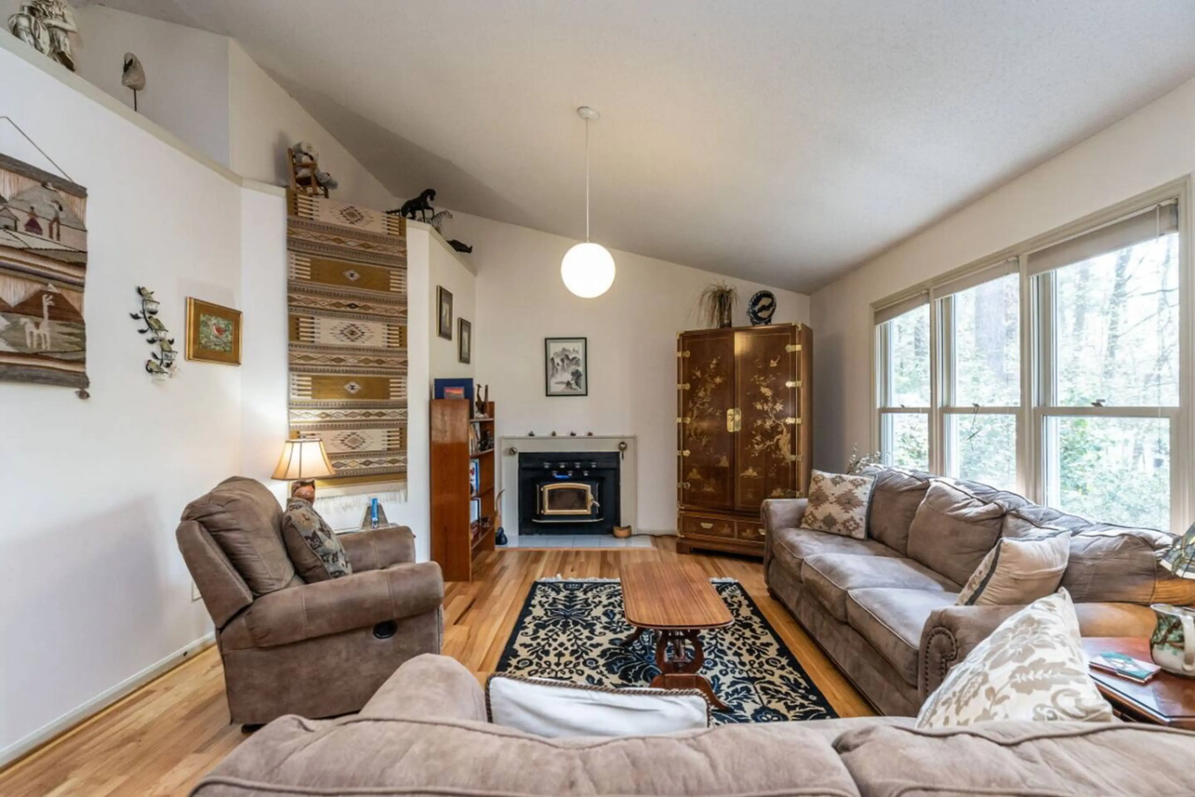 Our home is all main floor living with vaulted ceilings throughout ( except in hall bathroom), eclectically yet tastefully decorated. Designated bike lane at the end of the driveway. In town, so about a 10 minute walk to Weaver Street Market and great restaurants . Kitchen is fully equipped if you e...